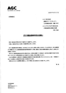第52回山本硝子建材よりご案内:AGCガラス製品価格改定のお知らせ